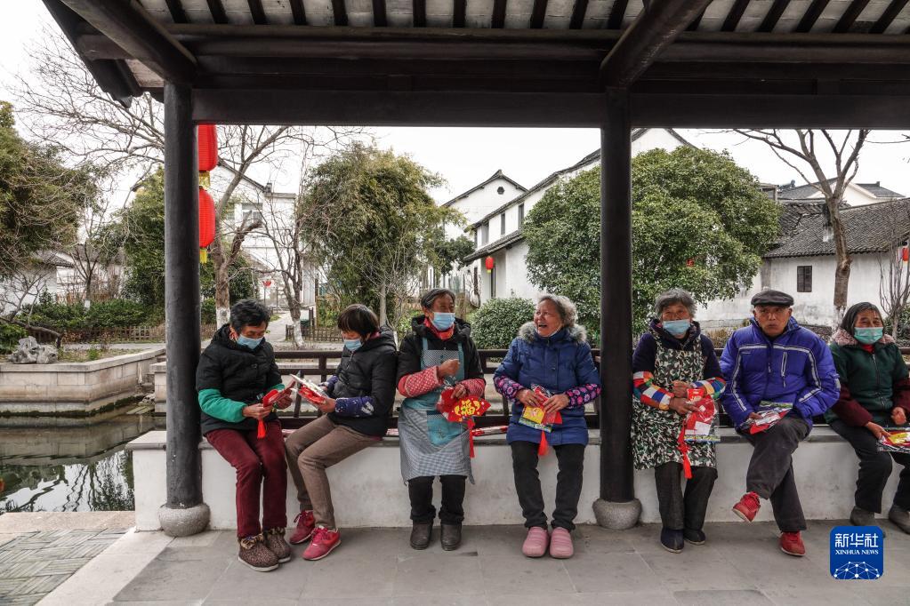 歇馬橋村村民在河道旁的亭廊里休息(2月2日攝)。該村通過(guò)古村落保護與村莊環(huán)境整治工作,建設成為長(cháng)三角鄉村文化傳承創(chuàng )新典型村落。
