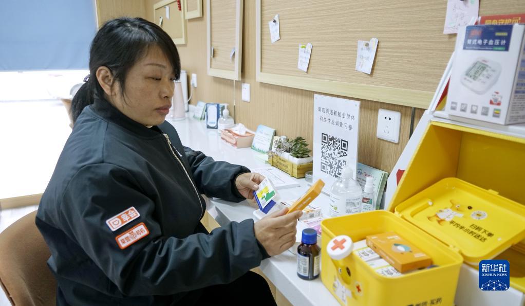 2月2日,從事網(wǎng)約車(chē)工作的王紅在豐臺區南苑街道黨群服務(wù)中心的“驛港灣”找藥。