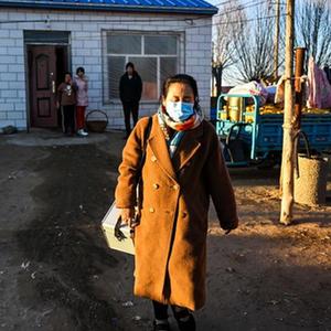 2月3日,李紅霞在衛生室查看村民健康檔案。