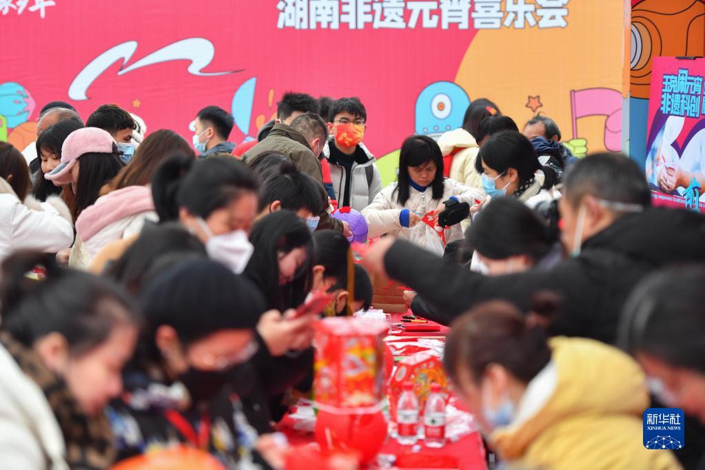 2月4日,市民和游客在湖南非遺元宵喜樂(lè )會(huì )現場(chǎng)體驗非遺項目。