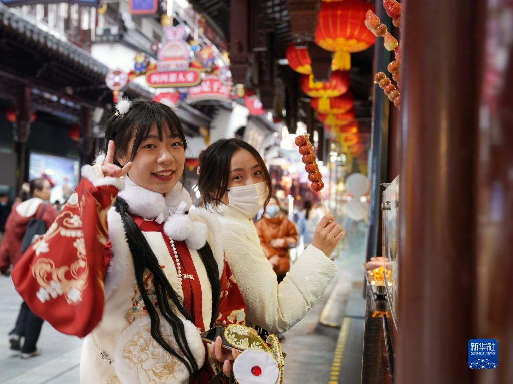 元宵節臨近,上海豫園熱鬧非凡,傳統彩燈與國潮花燈、老字號手工湯圓與兔子點(diǎn)心、身著(zhù)時(shí)裝與漢服的游客……傳統與國潮的交融營(yíng)造出濃厚的節日氛圍。