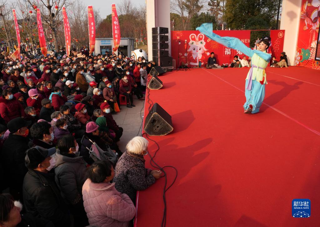 2月4日,在安徽省全椒縣太平文化廣場(chǎng),居民在臺下欣賞廬劇表演。