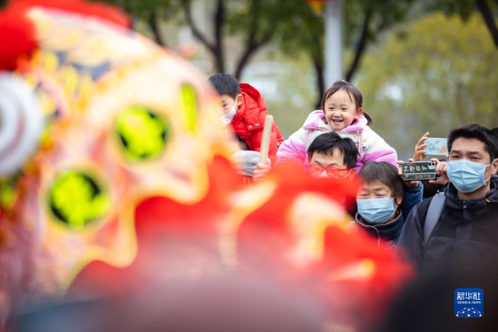 2月4日,市民在湖北省武漢市武漢體育中心舉行的中國車(chē)谷新春游園燈會(huì )上觀(guān)看舞獅表演。