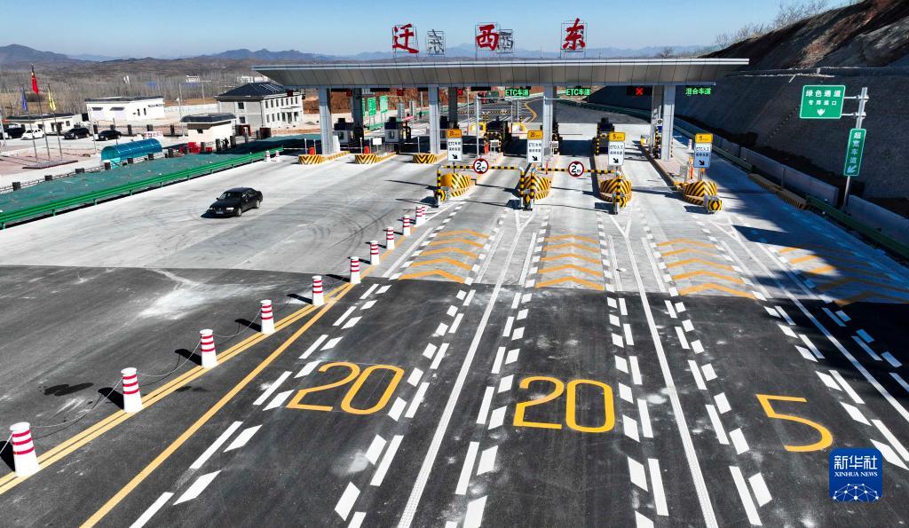 2月4日拍攝的京秦高速遵秦段遷西東收費站(無(wú)人機照片)。