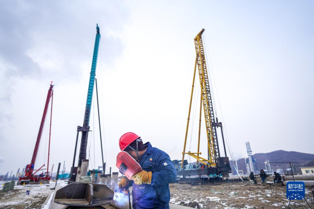 工人在吉林省吉林市吉林石化煉油化工轉型升級項目施工現場(chǎng)作業(yè)(1月31日攝)。