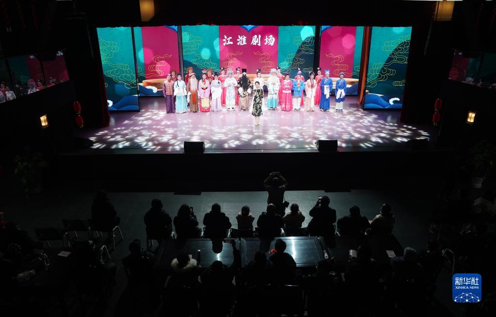 當日,江蘇省淮安市盱眙縣江淮劇場(chǎng)舉行新春黃梅戲專(zhuān)場(chǎng)惠民演出。當地黃梅劇團的演員獻演《鬧花燈》《天仙配》《女駙馬》等劇目,讓群眾在家門(mén)口享受藝術(shù)盛宴。據介紹,位于盱眙縣第一山國家森林公園的江淮劇場(chǎng)將持續開(kāi)展“為民、惠民、樂(lè )民”文藝演出,助推文旅深度融合發(fā)展。