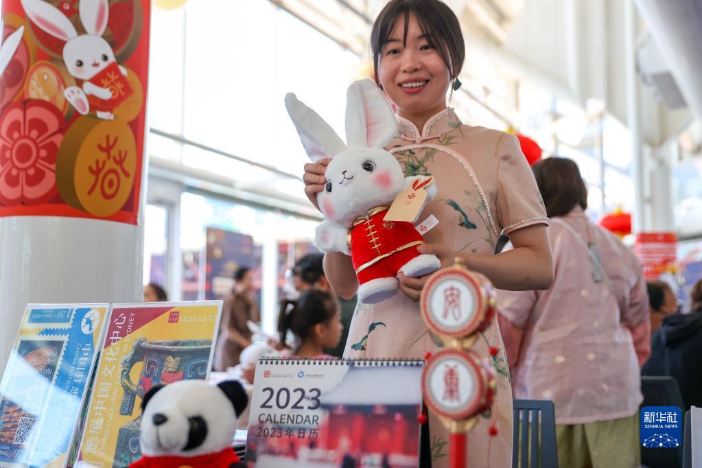 2月4日,在澳大利亞悉尼海事博物館,工作人員在“歡樂(lè )春節——走進(jìn)博物館過(guò)大年”文化體驗活動(dòng)中向游客展示兔年吉祥物。