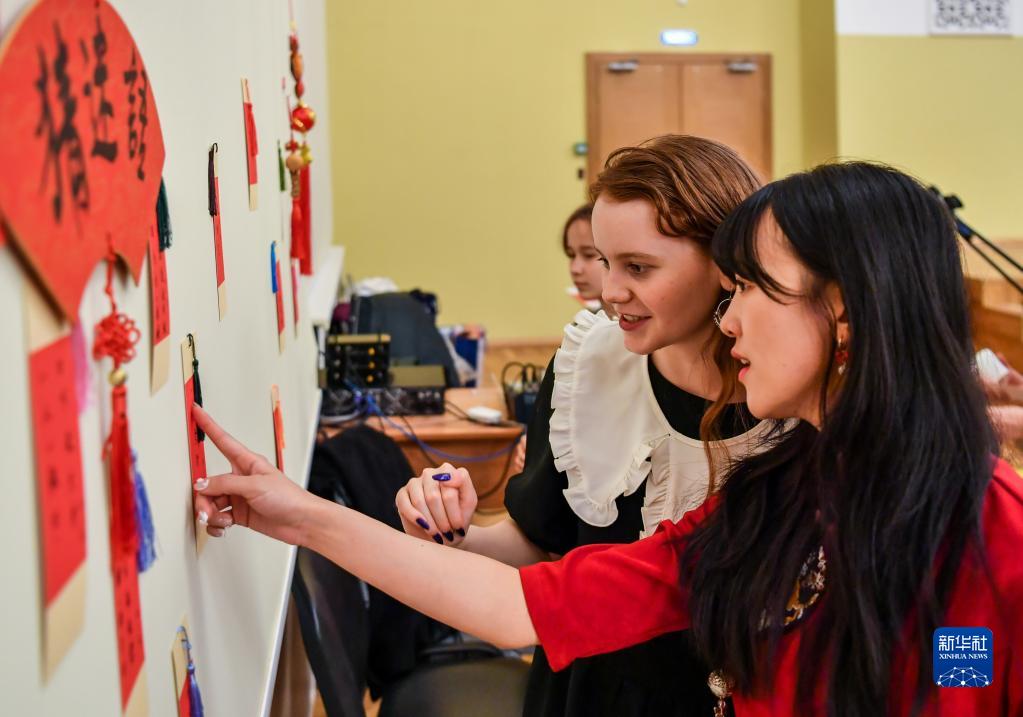 2月3日,學(xué)生在俄羅斯莫斯科國立人文大學(xué)孔子學(xué)院舉行的慶新春晚會(huì )上猜謎語(yǔ)。