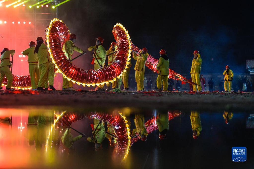 2月4日晚,人們在臺江縣參加苗族“舞龍噓花”活動(dòng)。