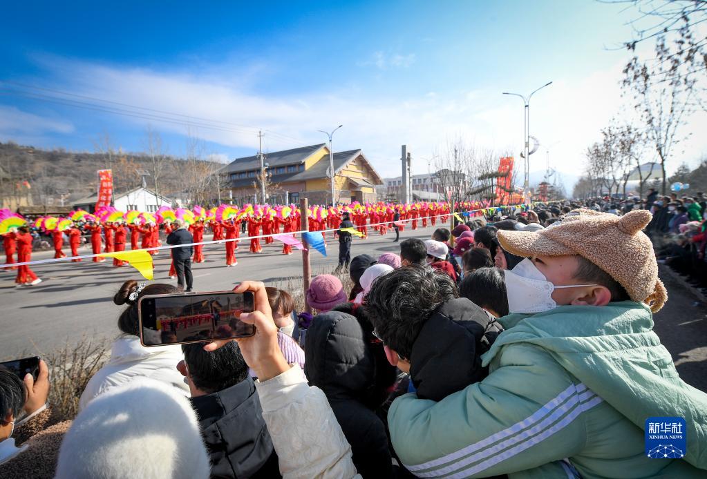 2月5日,人們在寧夏固原市隆德縣觀(guān)看社火表演。