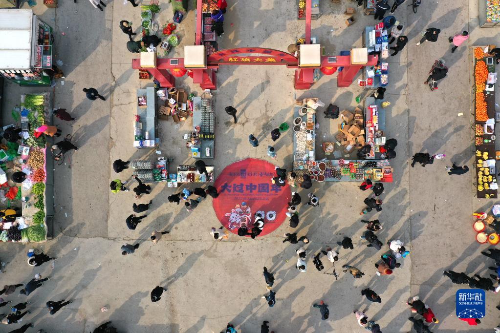 2月5日,市民和游客在有著(zhù)300余年歷史的遼寧省營(yíng)口紅旗大集上逛大集(無(wú)人機照片)。