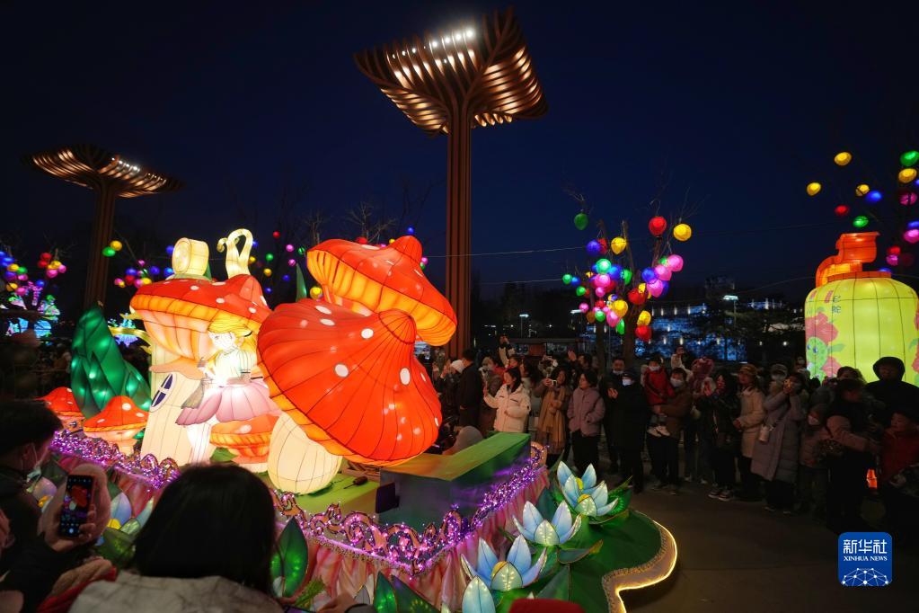 當日是元宵佳節,在北京世園公園,北京世園花燈藝術(shù)節的170組、3900盞特色花燈,組成3千米花燈觀(guān)賞長(cháng)廊及11個(gè)特色觀(guān)賞區,吸引了眾多游客前來(lái)賞花燈,度佳節。