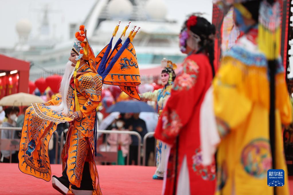 2月5日,在福建省廈門(mén)市湖里區舉行的民俗文化節上,演員在表演京劇。
