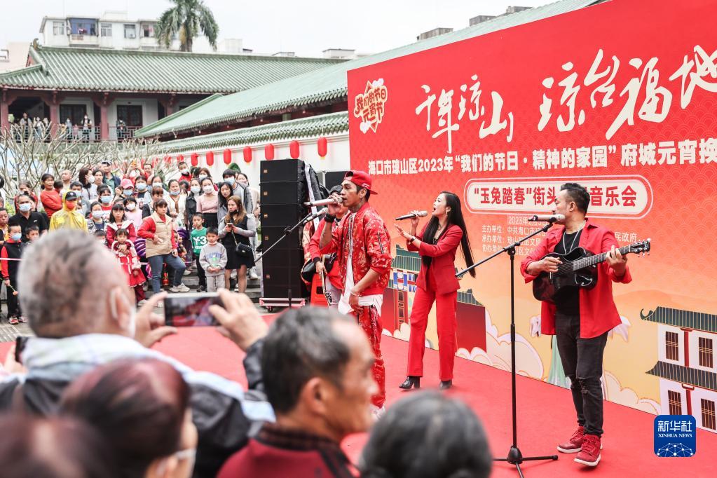 2月5日,游客在??谑协偵絽^府城觀(guān)看演出。
