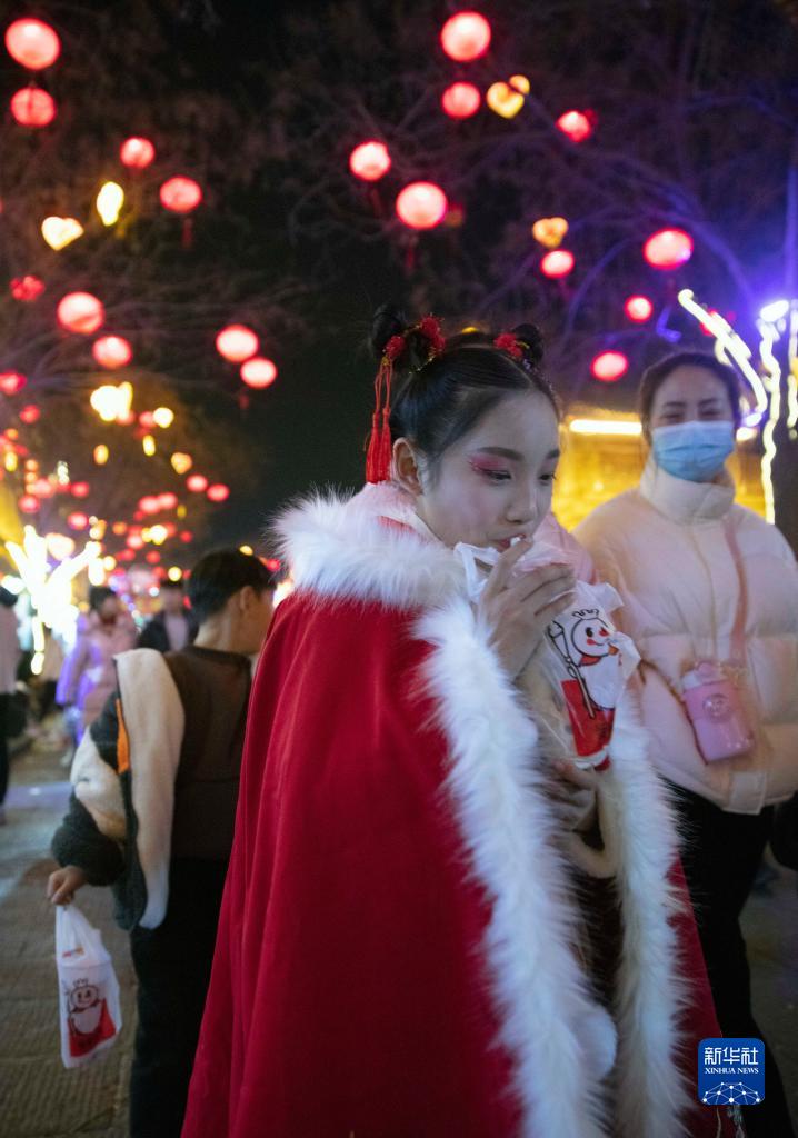 當日是農歷正月十五元宵節,在河南省??h古城里,古色古香的建筑配合璀璨燈光,吸引眾多游客沉醉其中,度過(guò)難忘的元宵夜。