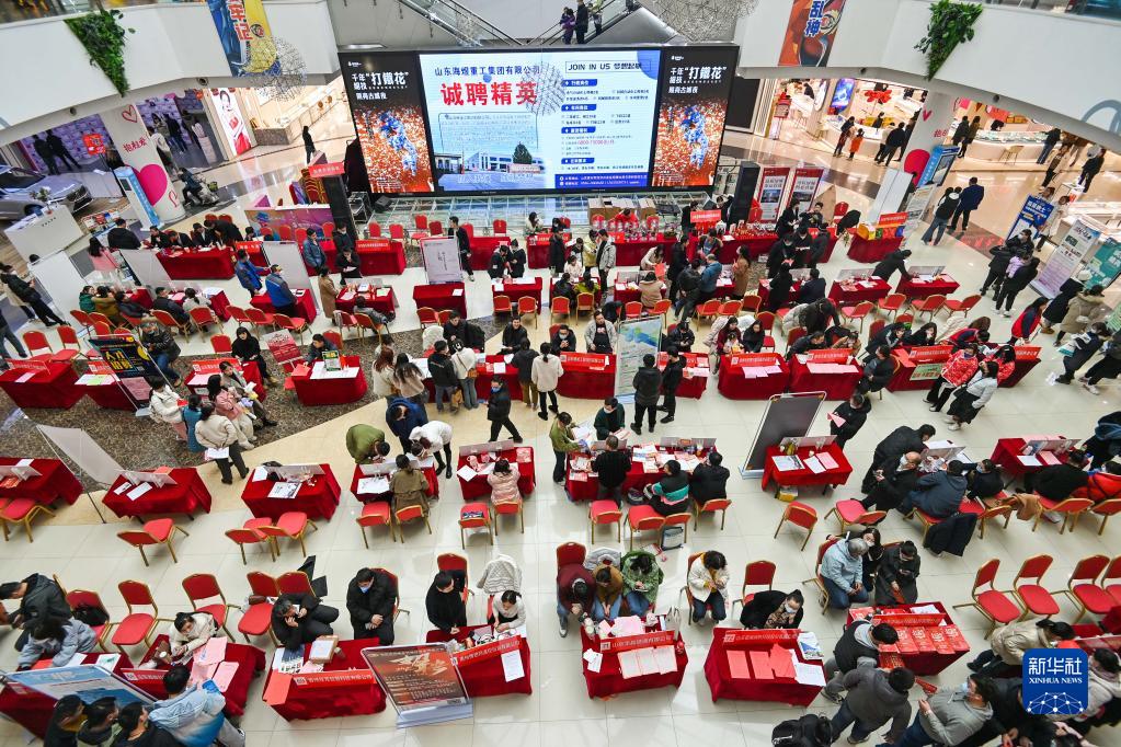 2月5日,求職者在山東省青州市舉辦的新春人才招聘會(huì )上了解崗位信息。