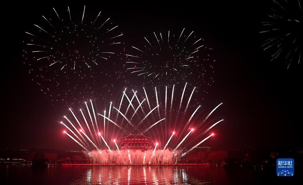 2月5日晚,2023西安曲江上元煙花晚會(huì )在大唐芙蓉園舉行。晚會(huì )上燈在水里游、人在船中舞、焰火漫天空,西安市勞模及先進(jìn)工作者、公安和消防及醫護人員等社會(huì )各界人士代表千余人和3000名市民代表相聚觀(guān)演。