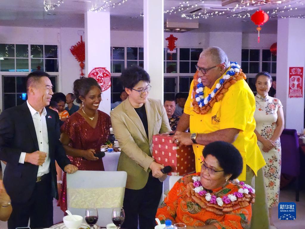 2月5日,斐濟總統卡托尼韋雷在蘇瓦的歡樂(lè )春節元宵聯(lián)歡會(huì )上為嘉賓抽獎。