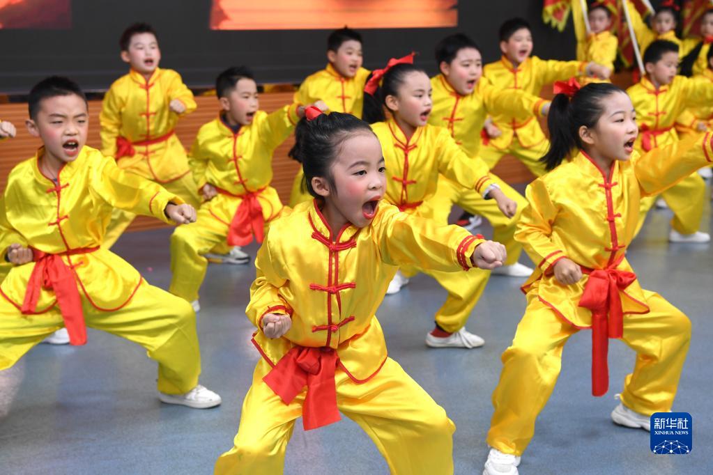 2月6日,學(xué)生在廣西南寧市濱湖路小學(xué)教育集團濱湖校區開(kāi)學(xué)儀式上表演武術(shù)。