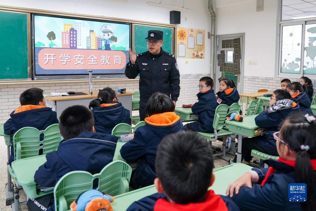 2月6日,在南京市金陵中學(xué)實(shí)驗小學(xué),南京市公安局建鄴分局興隆派出所的民警為同學(xué)講解安全知識。