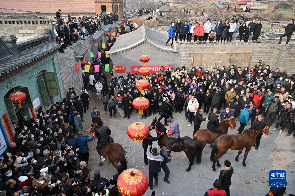 2月6日,人們在平定縣下董寨村觀(guān)看“跑馬排”表演。