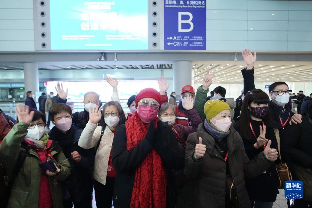 2月6日,內地與港澳人員往來(lái)全面恢復后,香港赴北京首個(gè)旅游團的游客在首都國際機場(chǎng)參加歡迎儀式。