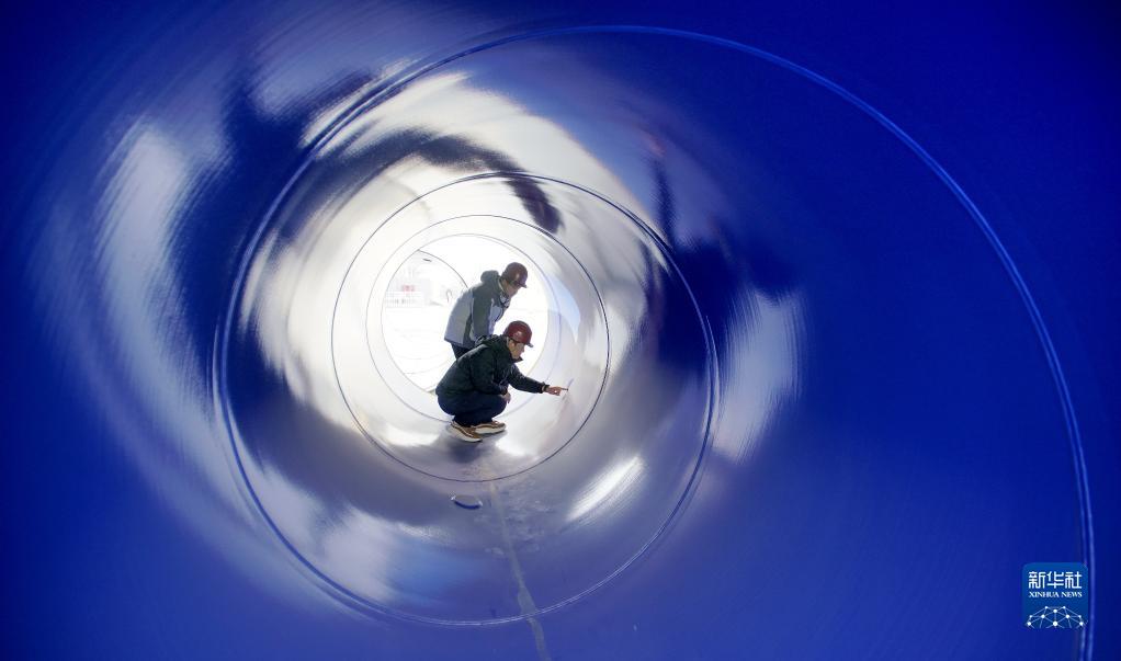 2月6日,技術(shù)人員在檢查南水北調配套工程北京大興支線(xiàn)機場(chǎng)連接線(xiàn)的管道質(zhì)量。