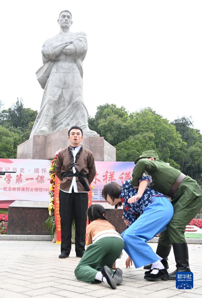 2月7日,福州市閩侯縣青口中心小學(xué)少先隊員和老師在“開(kāi)學(xué)第一課——致敬林祥謙”活動(dòng)現場(chǎng)表演情景劇《林祥謙》。當日是林祥謙烈士犧牲100周年,紀念活動(dòng)在福建省福州市閩侯縣祥謙鎮的“祥謙陵園”舉行。