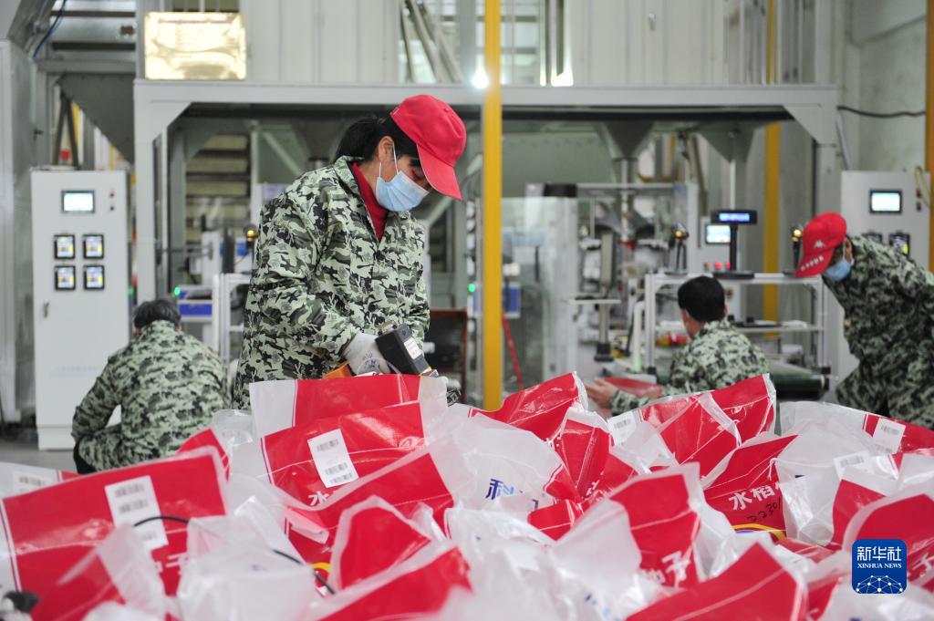 2月6日,在江西省南昌縣一家種業(yè)公司,工人給種子打包。