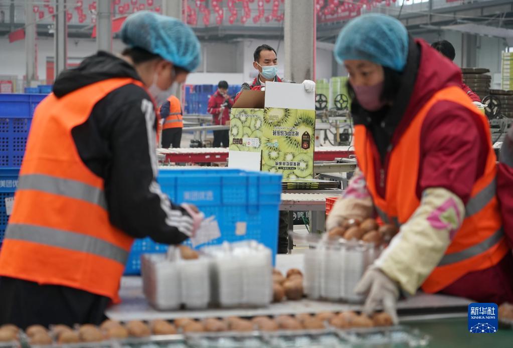 2月6日,在位于武功縣的京東物流陜西智能供應鏈中心,工作人員在包裝線(xiàn)上工作。