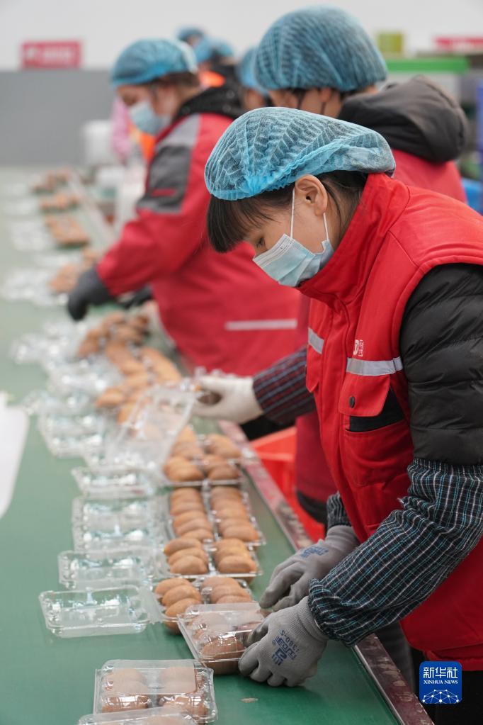 2月6日,在位于武功縣的京東物流陜西智能供應鏈中心,工作人員在包裝獼猴桃。