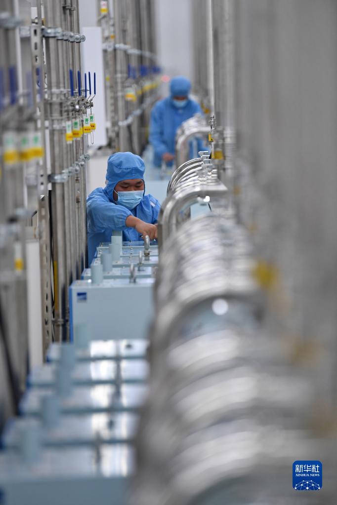 2月7日,在位于成都市雙流區的通威太陽(yáng)能(成都)有限公司生產(chǎn)車(chē)間內,工作人員在檢修設備。
