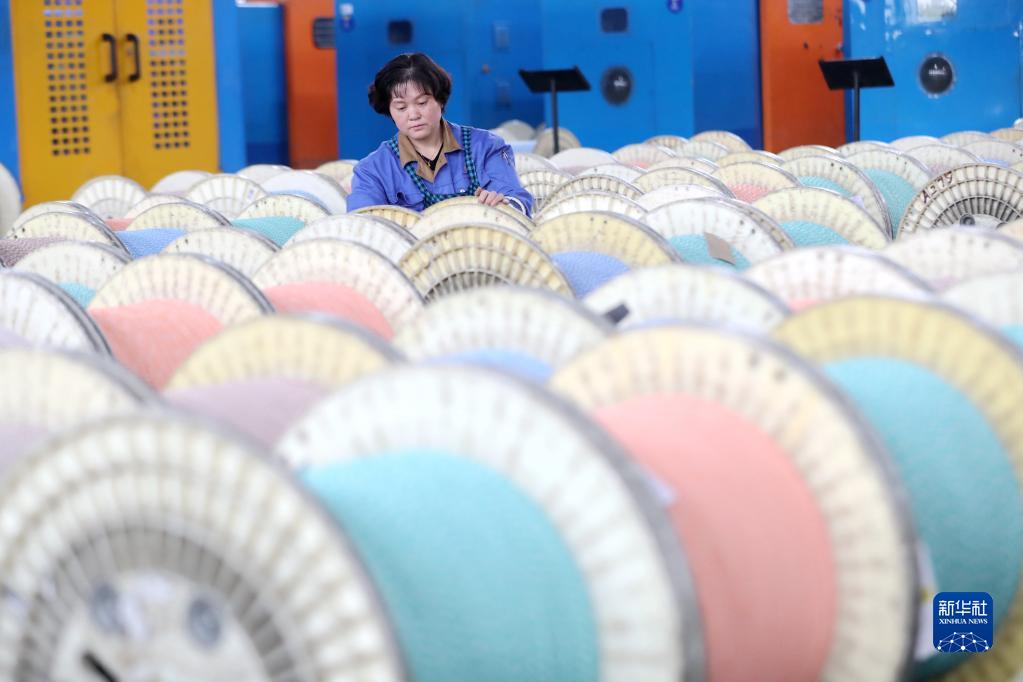 2月7日,工人在浙江省湖州市德清經(jīng)濟開(kāi)發(fā)區一家線(xiàn)纜企業(yè)生產(chǎn)車(chē)間生產(chǎn)網(wǎng)絡(luò )數據線(xiàn)纜。