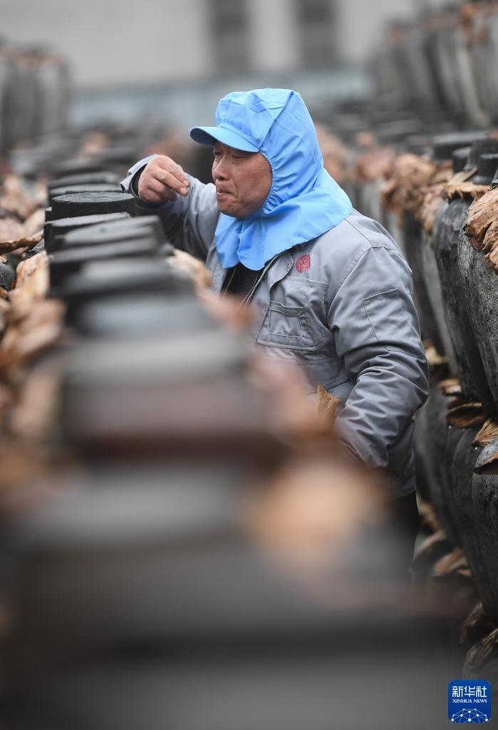 2月7日,在位于紹興市上虞區的女兒紅酒廠(chǎng),釀酒師王林祥用傳統方式品嘗冬釀黃酒的味道,以確定發(fā)酵程度。新華社記者 翁忻旸 攝