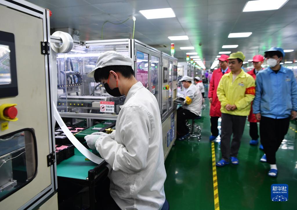 2月7日,在飛毛腿(福建)電子有限公司生產(chǎn)線(xiàn),福州經(jīng)濟技術(shù)開(kāi)發(fā)區稅務(wù)局工作人員在了解企業(yè)生產(chǎn)狀況。