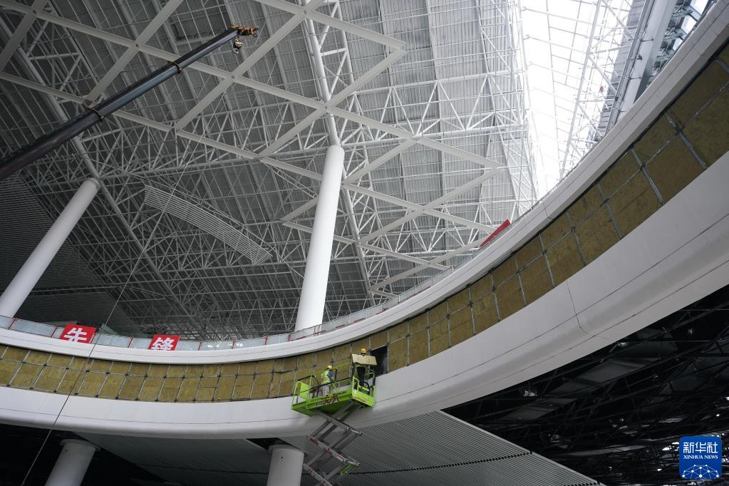 眼下,由中鐵建工集團承建的江蘇南沿江鐵路江陰站站房裝飾裝修作業(yè)有序推進(jìn)。