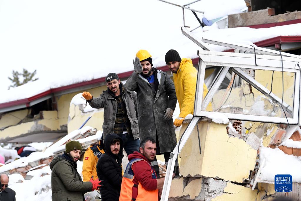 2月7日,人們在土耳其卡赫拉曼馬拉什省的埃爾比斯坦地區展開(kāi)救援工作。