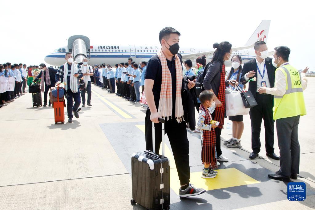 2月7日,一架載有中國乘客的國航航班從北京出發(fā)抵達柬埔寨首都金邊國際機場(chǎng),受到柬埔寨熱烈歡迎。新華社發(fā)(批隆攝)
