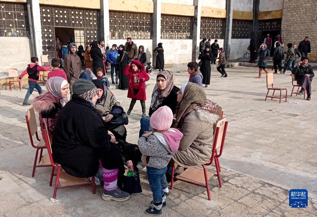 2月7日,受地震影響的人們在敘利亞阿勒頗省的一處安置點(diǎn)休息。