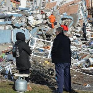 2月7日,人們聚集在土耳其南部卡赫拉曼馬拉什市一處地震廢墟。