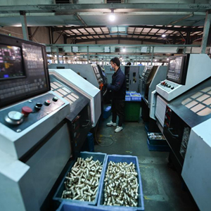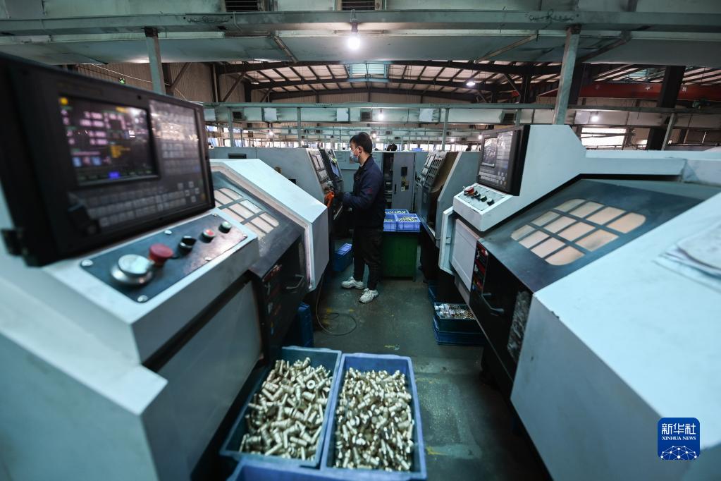 2月7日,在店口鎮的浙江銘仕興新暖通科技有限公司車(chē)間內,自動(dòng)化機床在生產(chǎn)水暖零部件。