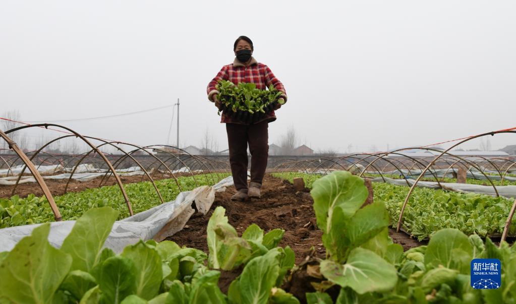 2月8日,農民在河南省濟源市克井鎮勛掌雙峰村白菜制種育苗基地苗床起苗。