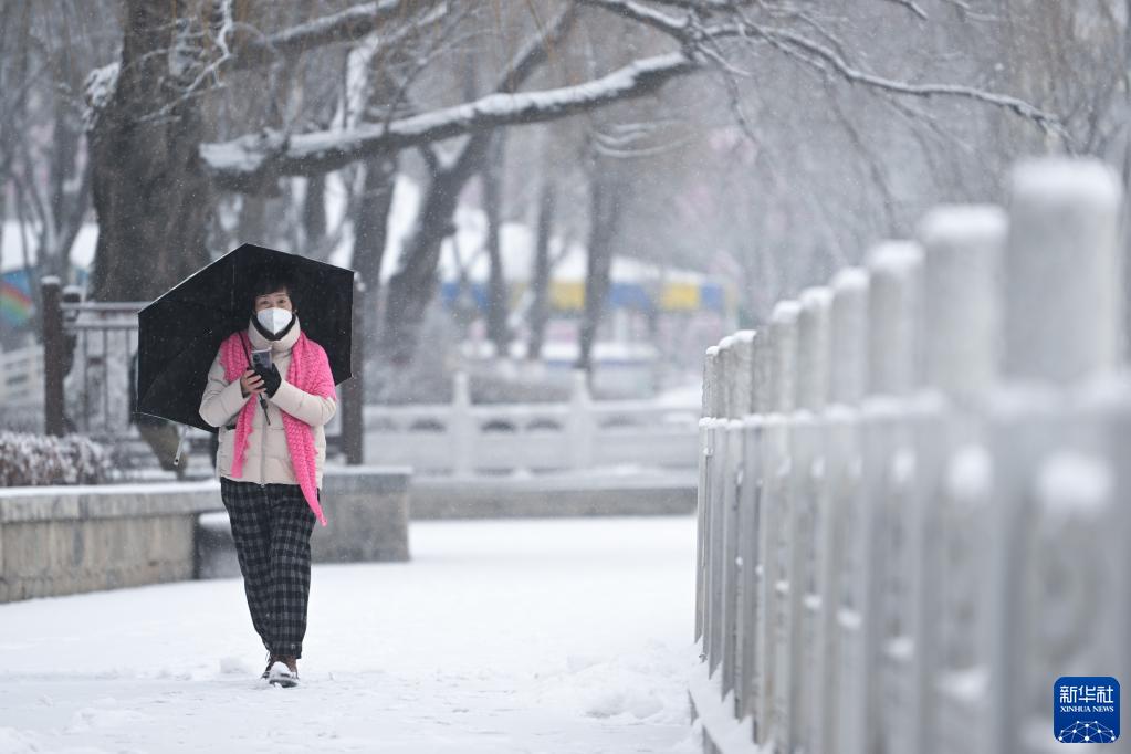 2月8日,市民在青海省西寧市人民公園賞雪。