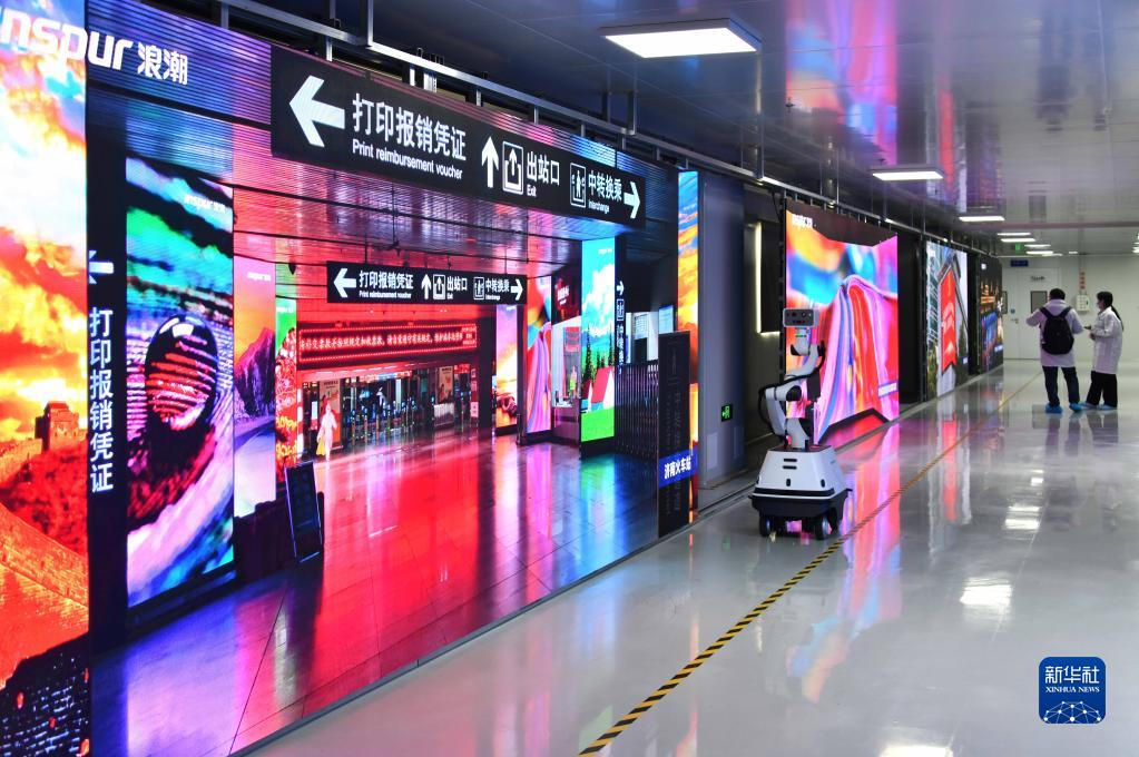 2月8日,在位于濟南高新區的浪潮超高清新型顯示制造基地,新產(chǎn)品展區展示了基地研發(fā)的超高清新型顯示設備。