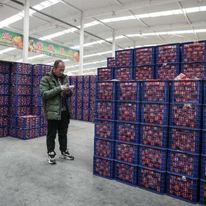 2月7日,商戶(hù)在東北新發(fā)地農產(chǎn)品供應鏈中心內清點(diǎn)貨品。