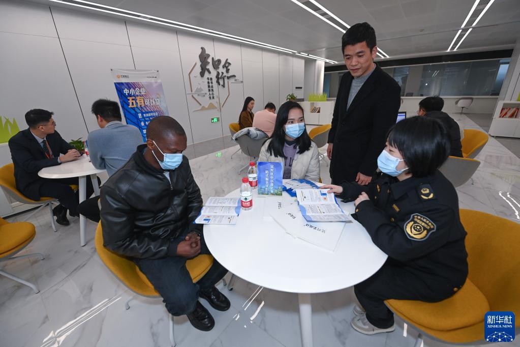 2月8日,在湖州市吳興區政務(wù)服務(wù)中心的中小微企業(yè)一站式服務(wù)平臺,市場(chǎng)監管、人力社保、銀行、招商局等多部門(mén)共同為企業(yè)提供創(chuàng )業(yè)、就業(yè)、人才和金融等政策解讀及相應政務(wù)服務(wù)。
