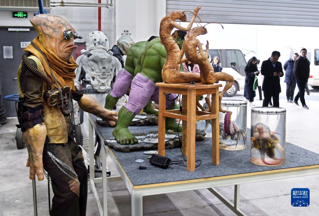 2月8日,訪(fǎng)客在青島東方影都影視產(chǎn)業(yè)園置景車(chē)間內參觀(guān)。
