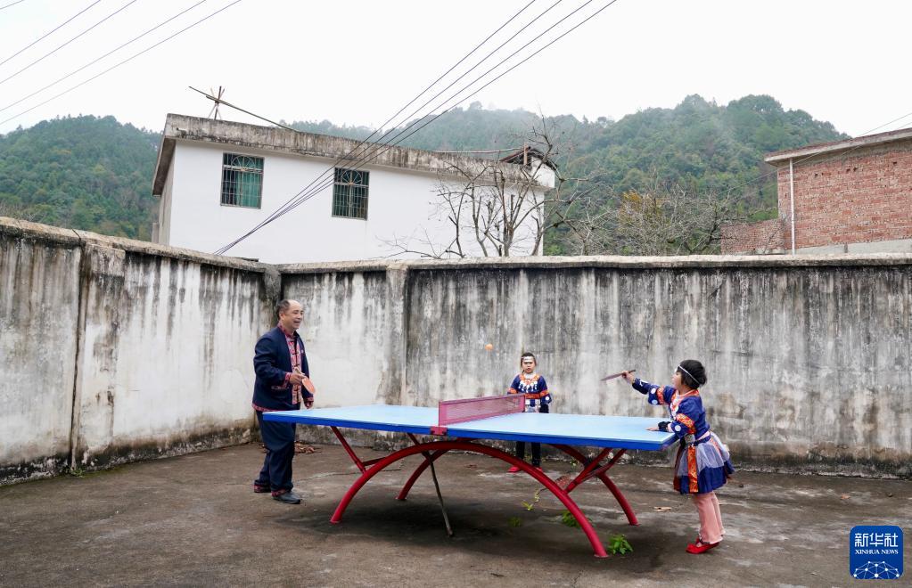 2月8日,鄧煙發(fā)在校內和學(xué)生一起打乒乓球。