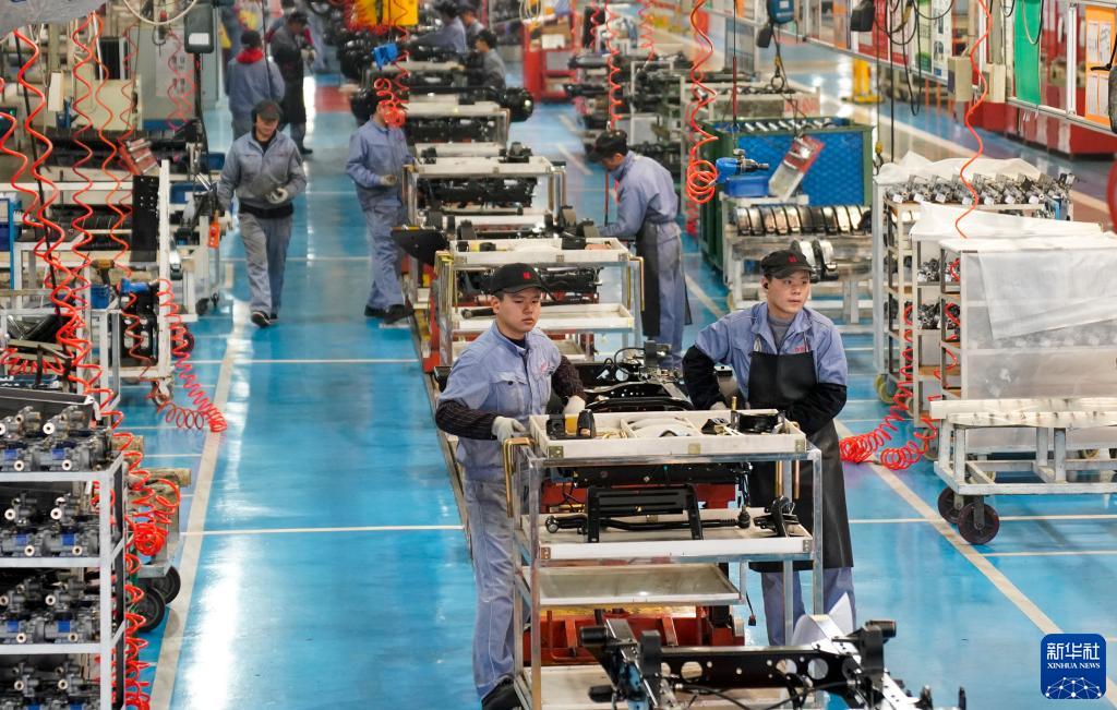 2月7日,工人在慶鈴汽車(chē)(集團)有限公司的商用車(chē)整車(chē)生產(chǎn)線(xiàn)上工作。