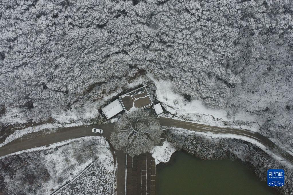 2月9日,一輛汽車(chē)行駛在河南省平頂山市寶豐縣觀(guān)音堂林業(yè)生態(tài)旅游示范區(無(wú)人機照片)。